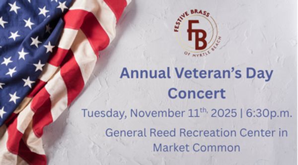 Join us for our Annual Veteran's Day Concert on Tuesday, November 11th, 6:30pm at the Robert H. Reed Recreation Center in Myrtle Beach. Learn more here.